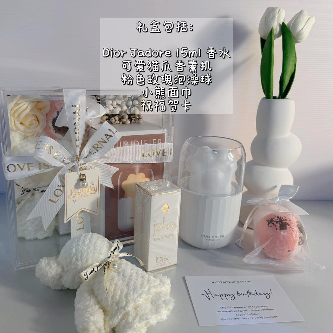 Dior Jadore 15ml 香水 可爱猫爪香薰机 粉色玫瑰泡澡球 小熊面巾 祝福贺卡