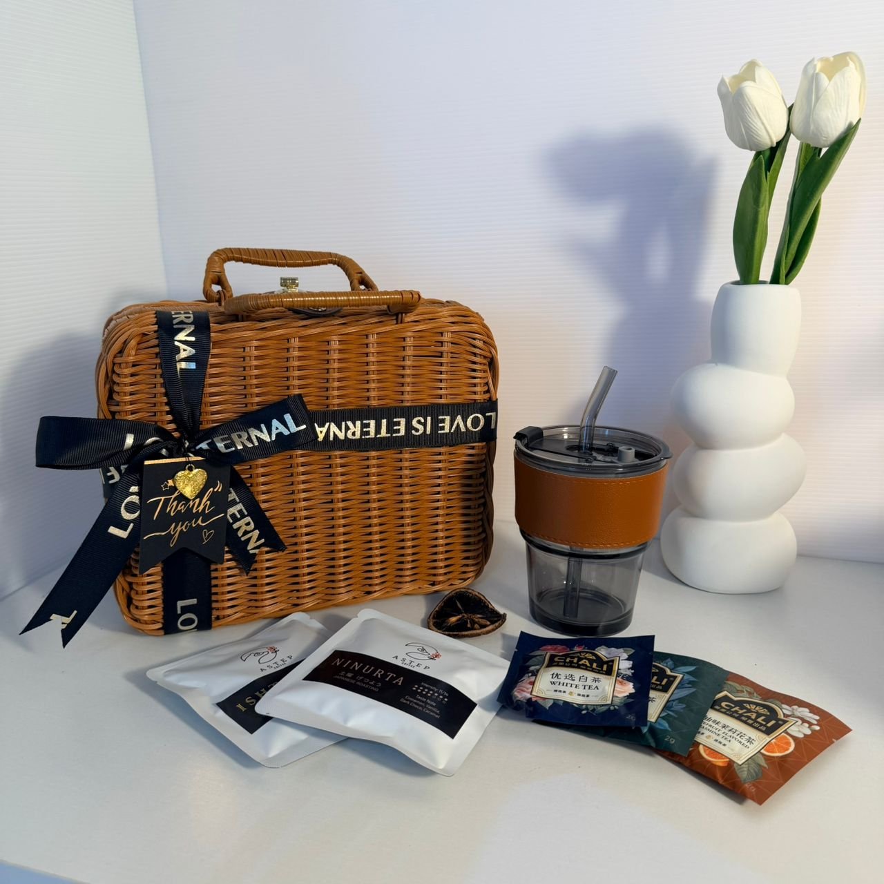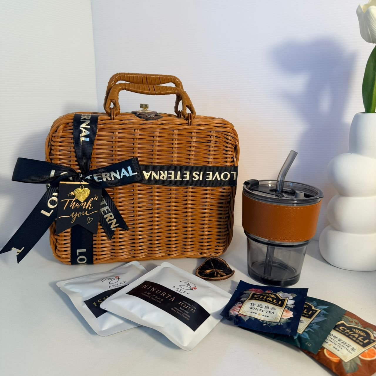玻璃吸管杯 Chali 茶包 x3 Astep 挂耳咖啡x2 祝福卡片